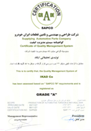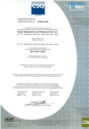 READ MORE ...IKAD Research & Productive Company was established on 1993. IT is the first manufacturer of different types of torsion bars, anti roll bars and stabilizer bars. The Company has the experienced experts in different units, Specially in Research and development unit which has led to enhance Customers and Products . Also, in addition to the quantitative development, it has paid special attention to the qualitative development of the products, which has led to attain an ISO 9001:2008 and an ISO/TS 16949:2009 Standard Certificates from IMQ of Italy. Moreover, the company has acquired a Standard Certificate from National Standard Organization of Iran (for windshield wipers), a Certificate of Quality Management System (Grade A) from SAPCO (Supplying Automotive Parts Company), Grade B from Bahman group and a Grade B+ from Sazeh-Gostar Saipa Company. The production lines of Iran Khodro, Saipa, Zamyad, Pars Khodro and Bahman Group companies are directly supplied with all products of IKAD Company, which is the best proof for the high quality of its products.